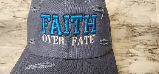 Faith Over Fate Embroidered Washed Distressed Worn Hip-Hop personality Cotton Baseball Cap