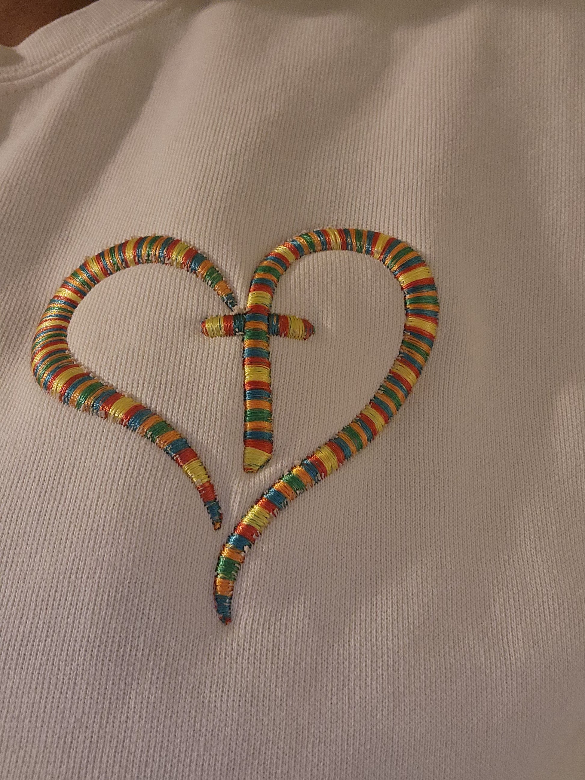 3D Puff Cross Heart Embroidery Unisex Sweatshirt