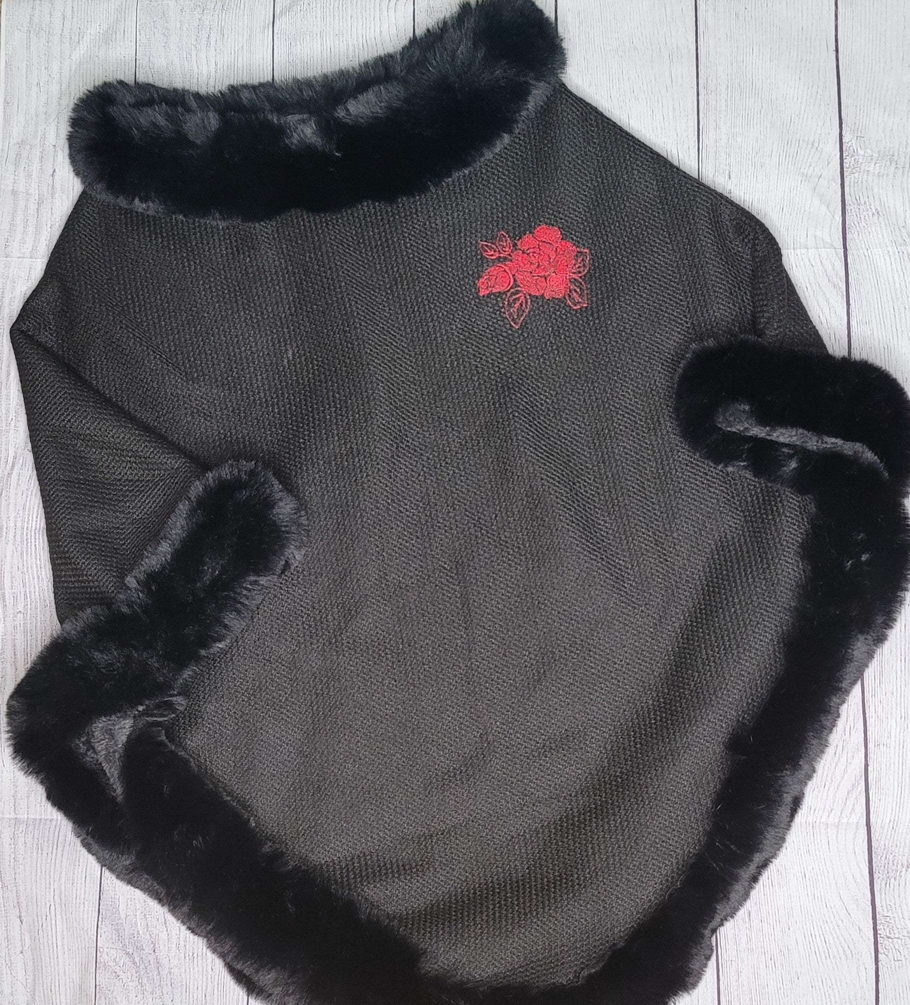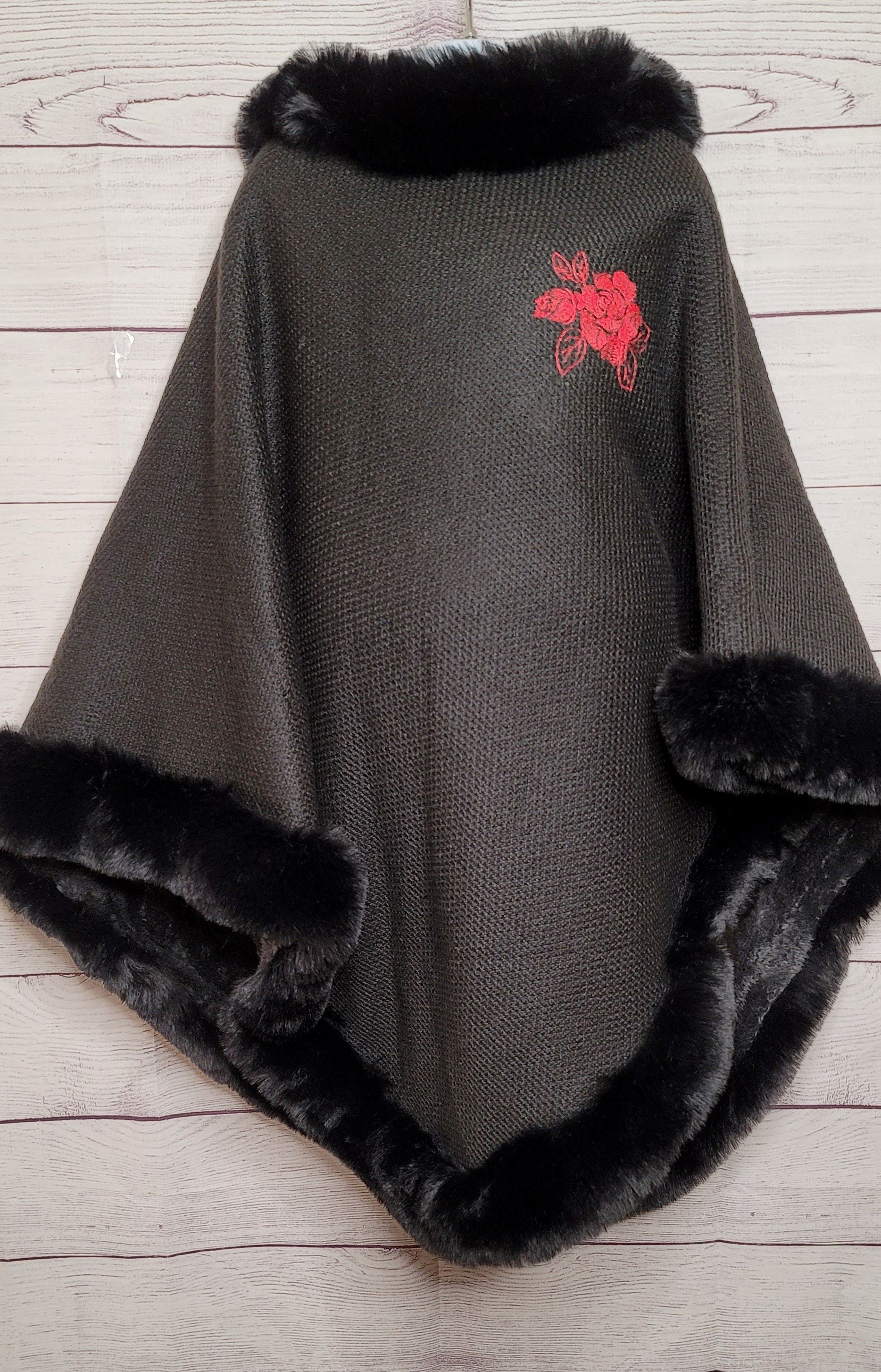 Rose Embroidery Fur Poncho| Women's Embroidery Ponchos